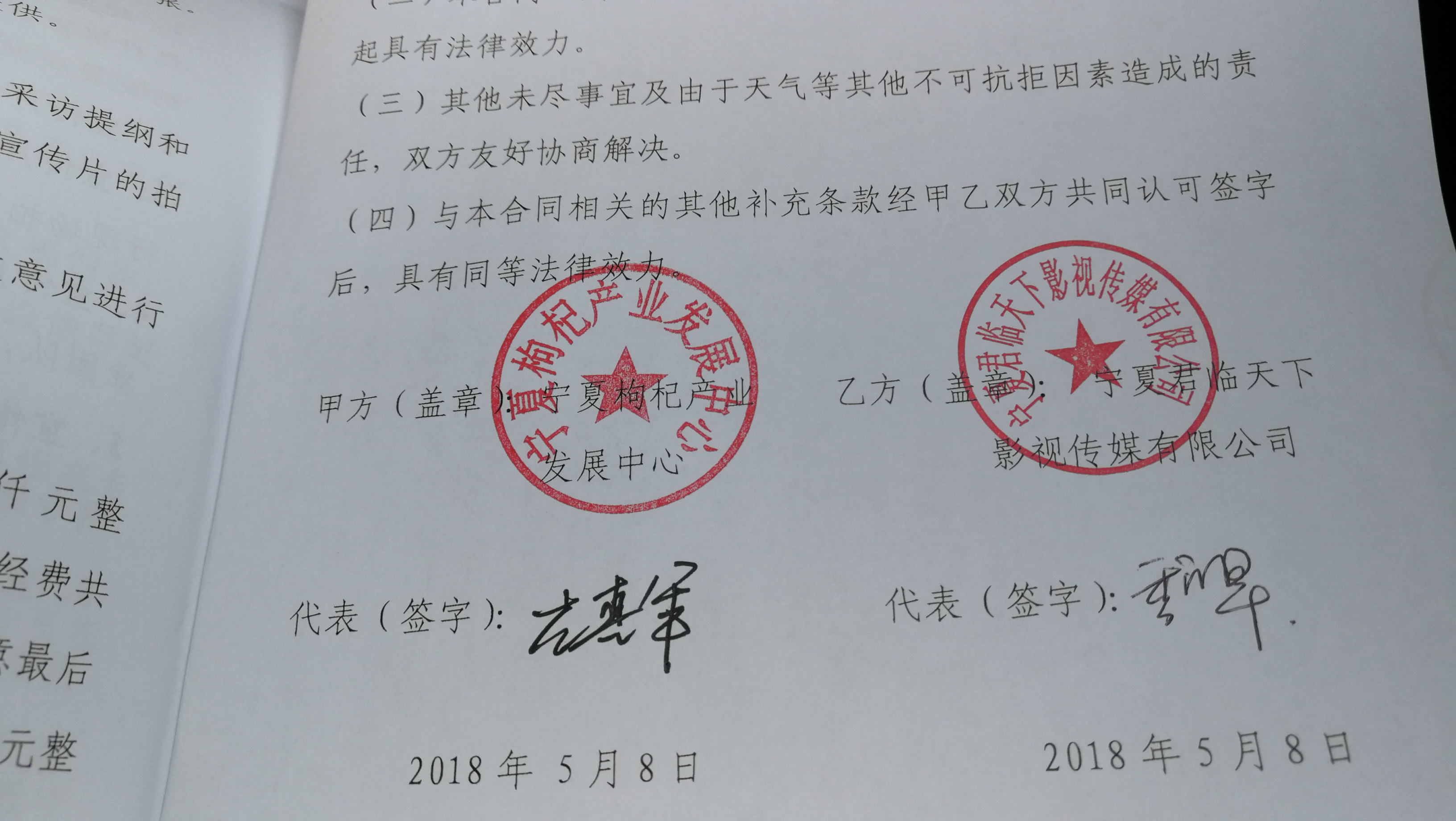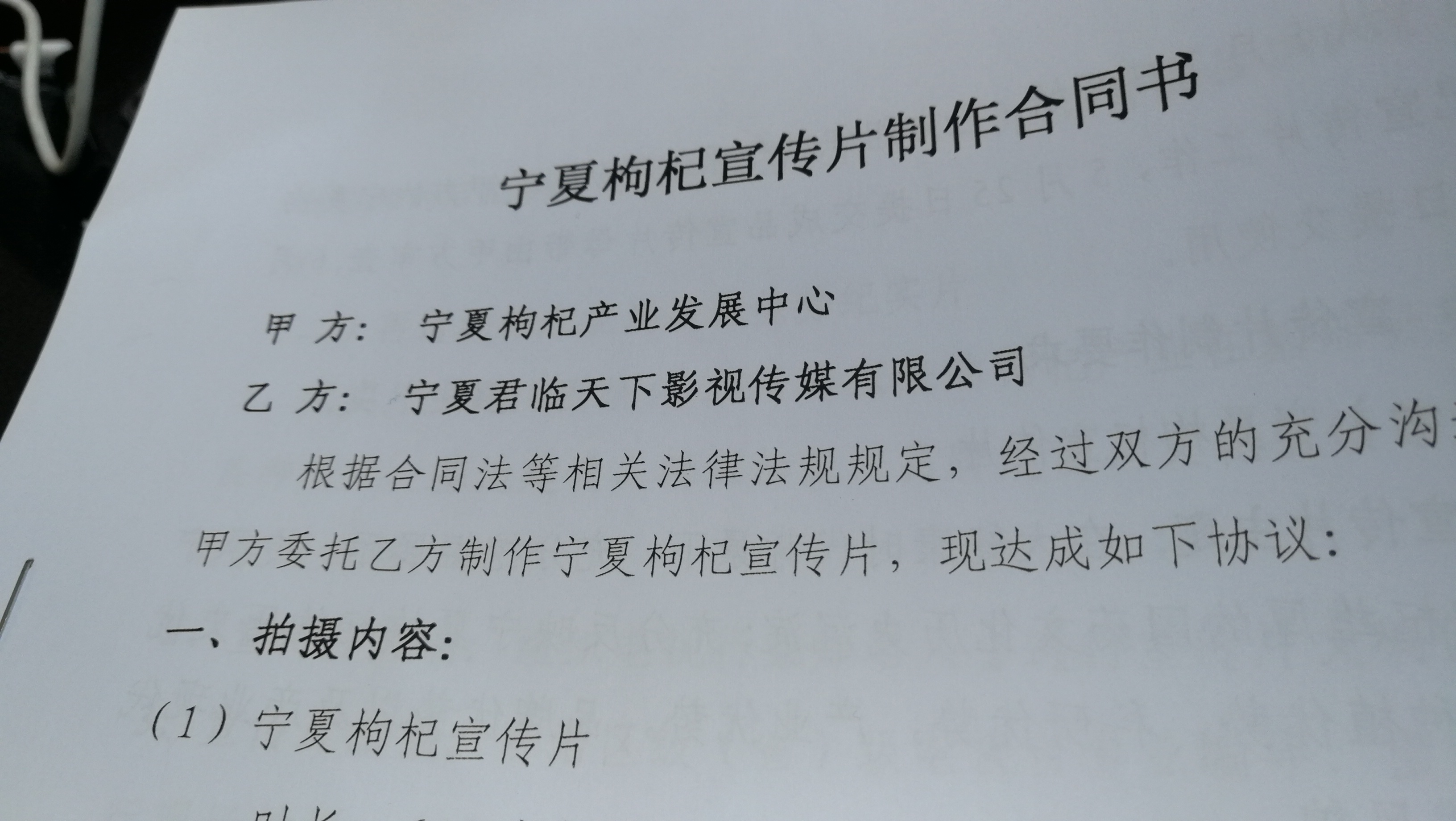 近日我公司與寧夏枸杞產(chǎn)業(yè)發(fā)展中心實施全面合作,中國《寧夏枸杞》宣傳片、紀錄片、廣告片等影片均由寧夏君臨天下影視傳媒有限公司全面展開拍攝。