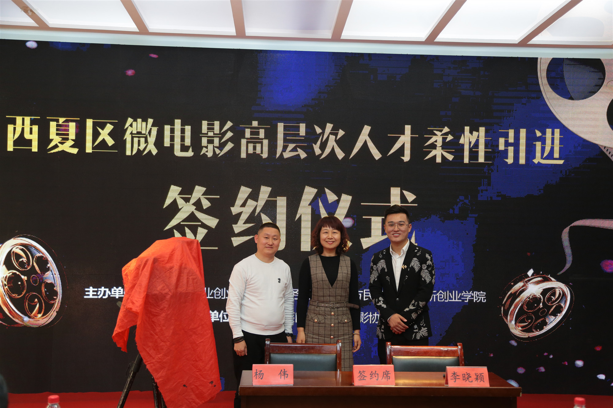 同時(shí)頒獎(jiǎng)典禮之后,為推動(dòng)西夏區(qū)構(gòu)筑人才引領(lǐng)發(fā)展高地,加快西夏區(qū)微電影人才隊(duì)伍建設(shè),打造西夏區(qū)微電影“人才小高地”,借勢(shì)此次盛典,西夏區(qū)微電影高層次人才柔性引進(jìn)簽約儀式召開(kāi)。簽約儀式上,西夏區(qū)政法委副書(shū)記、秘書(shū)長(zhǎng)兼西夏區(qū)就創(chuàng)局局長(zhǎng)李曉穎同微電影高層次人才魏亞平、楊偉等,本著雙方“互利共贏、循序漸進(jìn)、重點(diǎn)推進(jìn)、共謀發(fā)展”的原則,簽訂“西夏區(qū)微電影高層次人才柔性引進(jìn)” 協(xié)議,為西夏區(qū)微電影“人才小高地”建設(shè)注入新鮮血液。