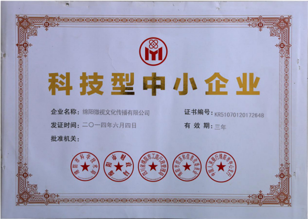 綿陽微視文化傳播有限公司為綿陽微電影協(xié)會會長單位、綿陽市高爾夫球協(xié)會理事單位、綿陽市文化產(chǎn)業(yè)促進(jìn)會會員單位、綿陽市互聯(lián)網(wǎng)協(xié)會優(yōu)秀網(wǎng)絡(luò)文化單位、綿陽市文明交通宣傳先進(jìn)單位、中國網(wǎng)微電影頻道綿陽采編站、CCTVIP電視中國微電影頻道綿陽制作中心、2016軍民融合創(chuàng)新創(chuàng)業(yè)先進(jìn)團(tuán)隊(duì)、科技型中小企業(yè);公司擁有廣播電視節(jié)目制作經(jīng)營許可證;擁有了十多人的創(chuàng)作班子和近三十人的微電影攝制組,先后添置了專業(yè)影像制作器材(先進(jìn)的拍攝設(shè)備高清4K電影機(jī)、電影攝像鏡頭群組、佳能攝像鏡頭群組、大小拍攝專業(yè)搖臂軌道、錄音燈光設(shè)備等專業(yè)設(shè)備)。先后為各個政府機(jī)構(gòu)及企事業(yè)單位拍攝宣傳片及微電影百余部,截至目前獲得國際性獎項(xiàng)10余部(亞洲微電影藝術(shù)大賽獲得一部二等獎、7部三等獎、一部好作品獎)、(金紫荊國際新媒體電影大賽獲得3部單項(xiàng)獎及一部優(yōu)秀獎);此外還獲得國內(nèi)獎項(xiàng)20余部。
